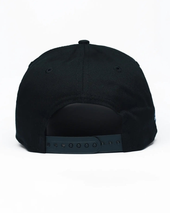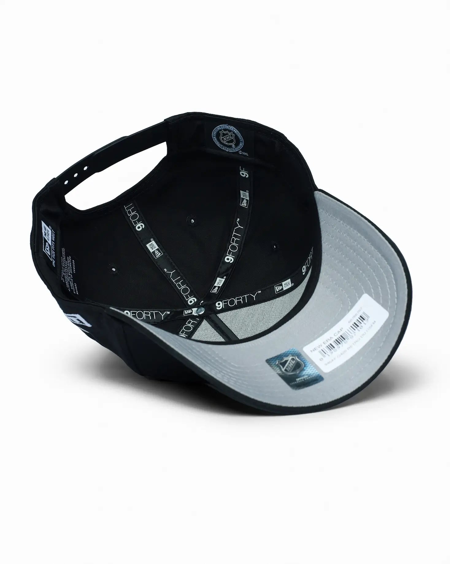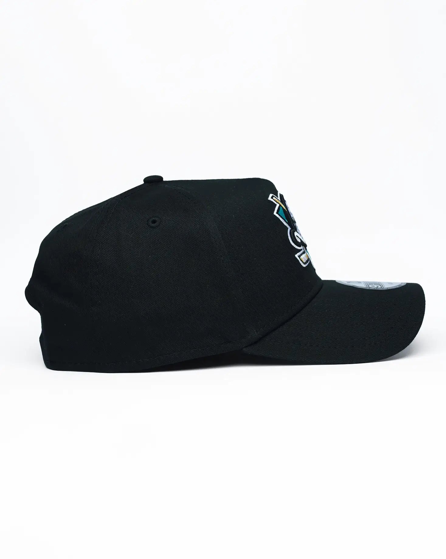The Anaheim Ducks Retro 9Forty A-Frame Snapback delivers classic NHL style with New Era's iconic construction, made with 100% cotton. Featuring a structured black crown paired with a black visor and contrasting gray undervisor, this snapback combines heritage aesthetics with modern comfort. The embroidered team logo on the front showcases your allegiance with authentic detail. The adjustable snapback closure ensures a customizable fit for all-day wear, making it an essential piece for dedicated fans and streetwear enthusiasts alike.