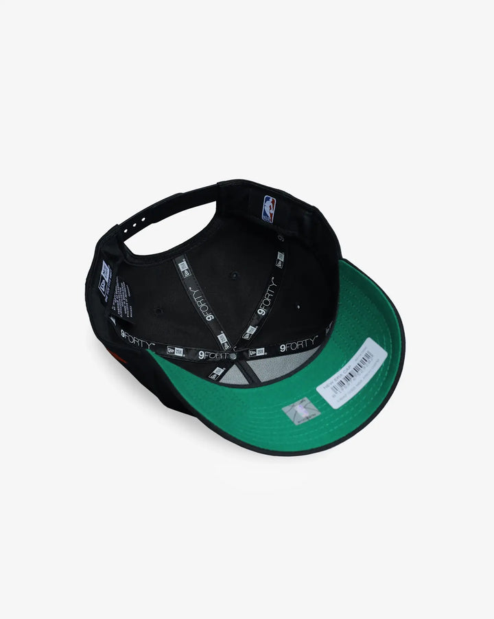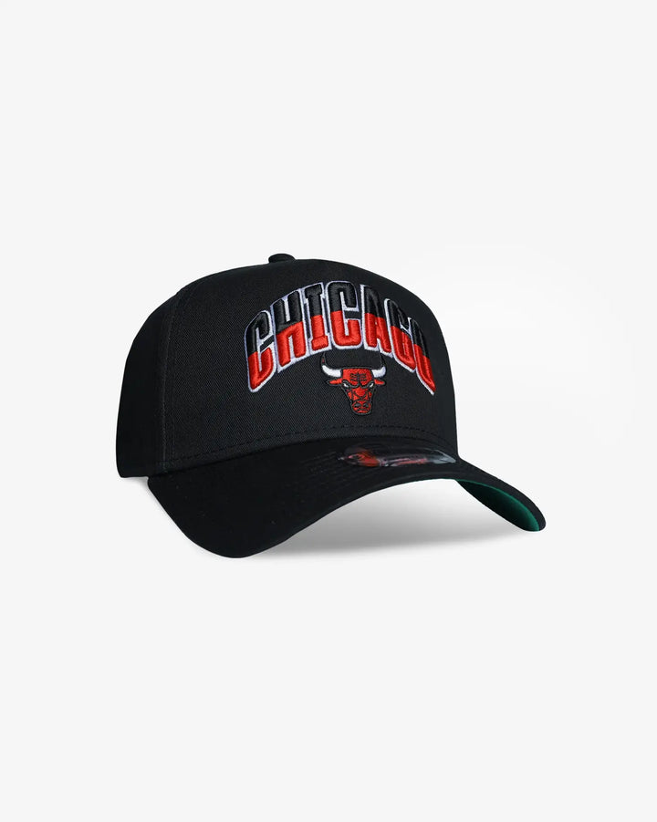 This New Era 9FORTY A-Frame cap combines premium craftsmanship with authentic Chicago Bulls style. Featuring an arched "CHICAGO" embroidered in bold red, black and white above the iconic Bulls logo, it delivers a striking and true NBA look. The taller structured crown offers a modern silhouette favored by sports and streetwear fans, while the classic green undervisor pays homage to traditional baseball caps. Designed with an adjustable back, this cap ensures a secure, comfortable fit for everyday wear.