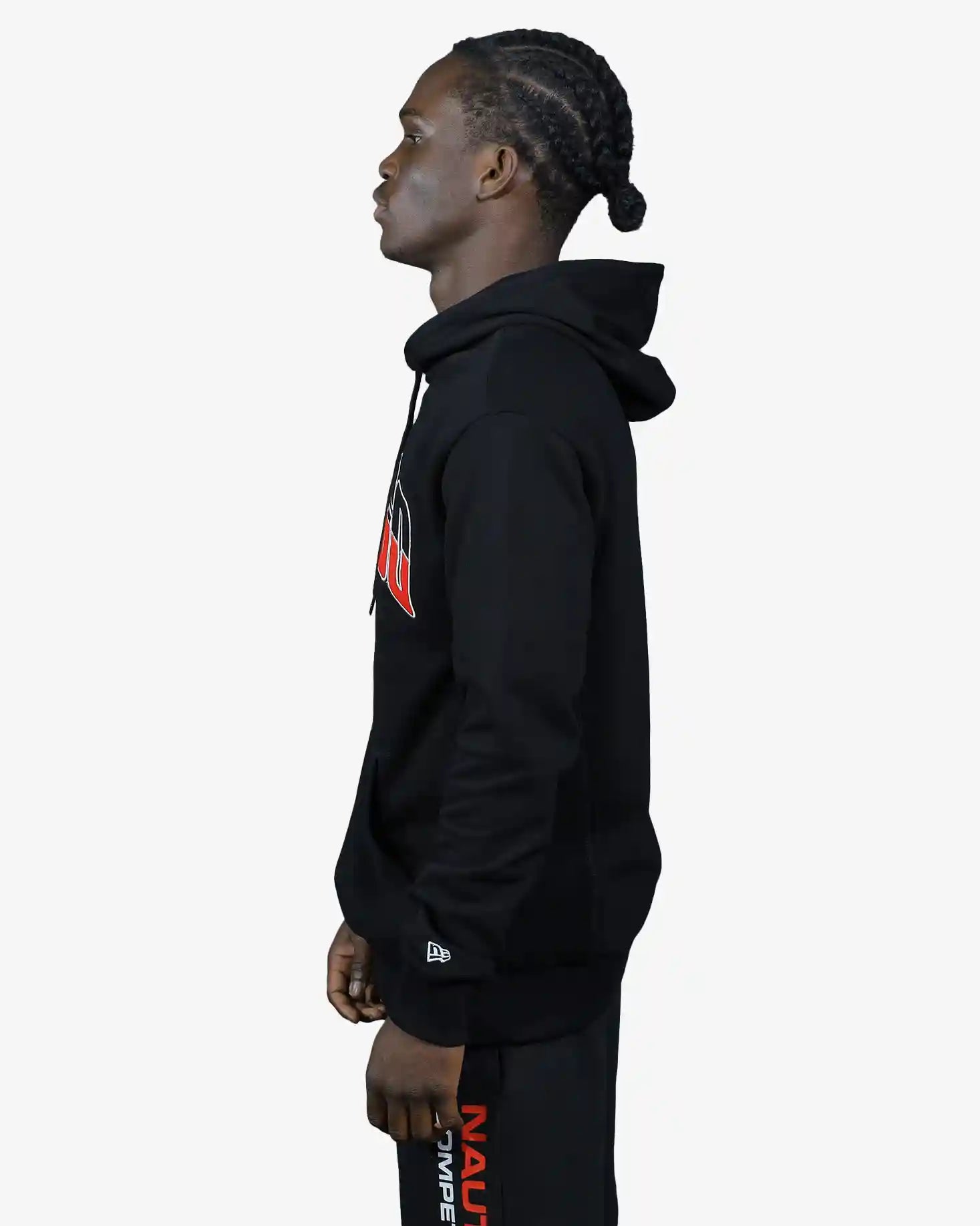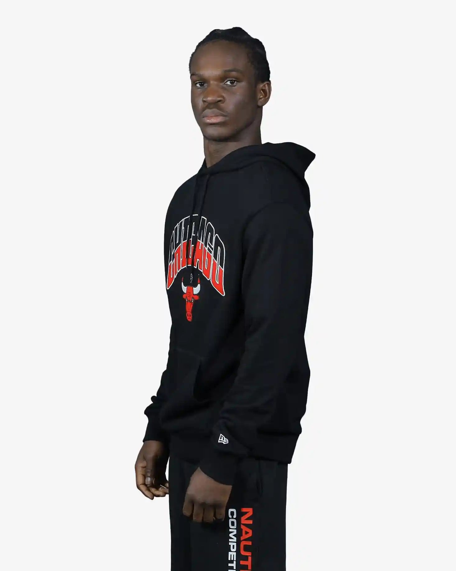 Dominate the court in this Chicago Bulls Arch Graphic Oversized Hoodie, engineered for authentic streetwear style. Featuring the iconic Bulls logo with arch wordmark prominently displayed on the chest, paired with a New Era Flag embroidered detail on the left sleeve. Constructed from premium French Terry cotton, this oversized pullover delivers superior comfort and durability. The kangaroo pocket provides practical storage, while the adjustable drawstring hood offers customizable coverage. Perfect for dedicated fans and streetwear enthusiasts seeking quality construction and timeless NBA aesthetics.