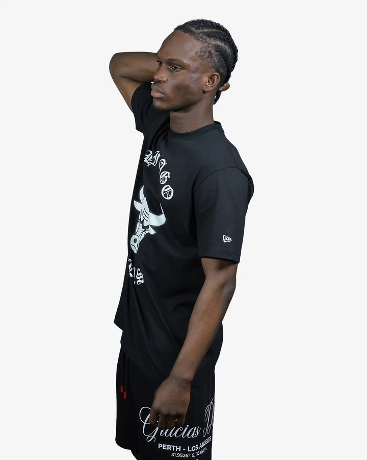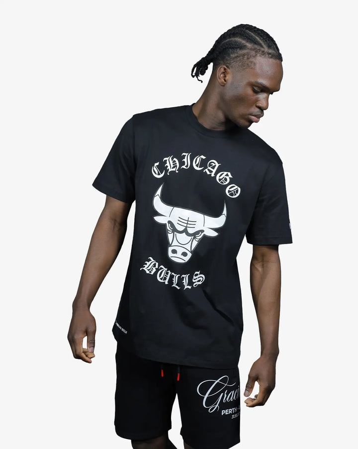 The New Era NBA Chicago Bulls Gothic Script Oversized Tee delivers authentic streetwear credibility with its iconic C...