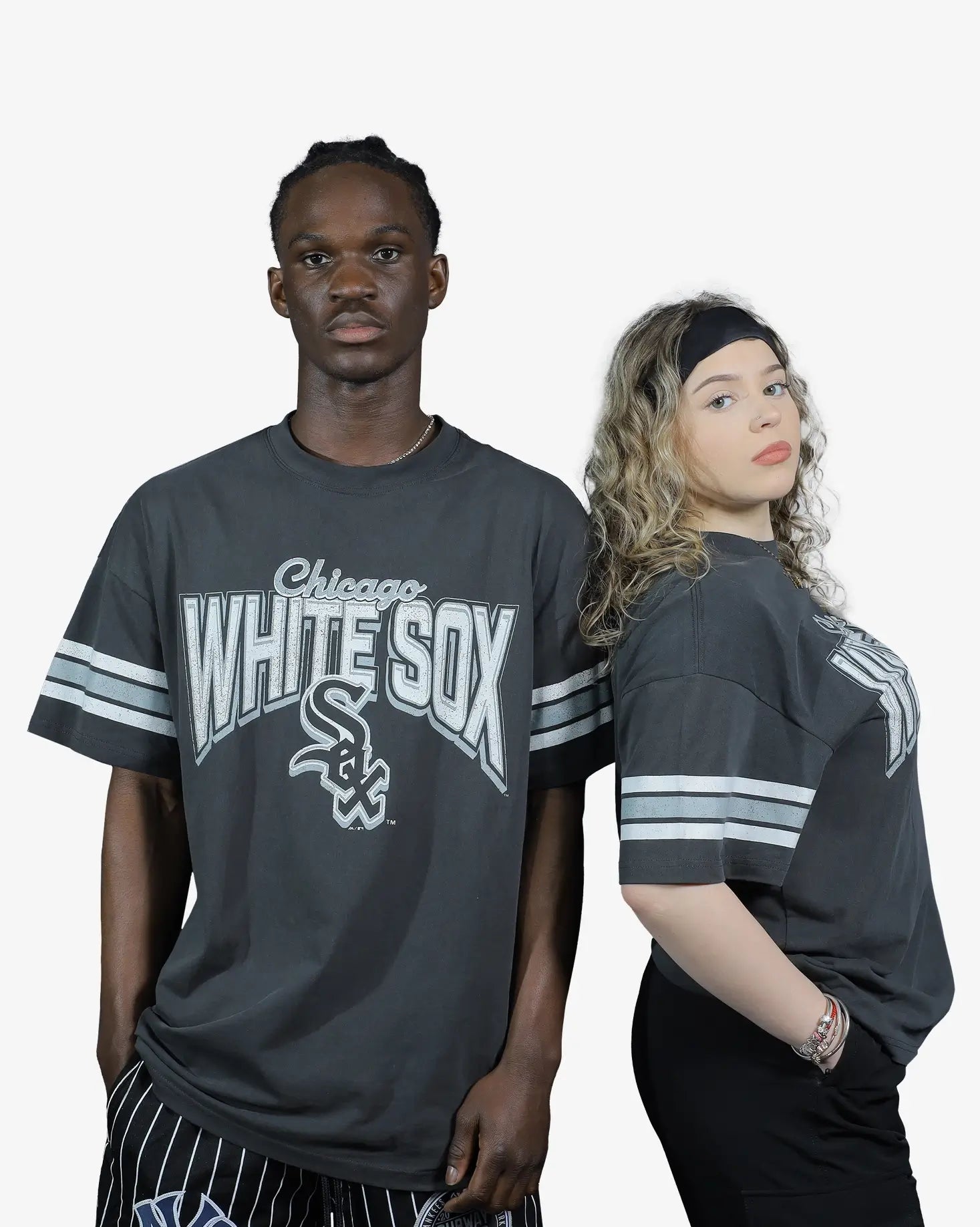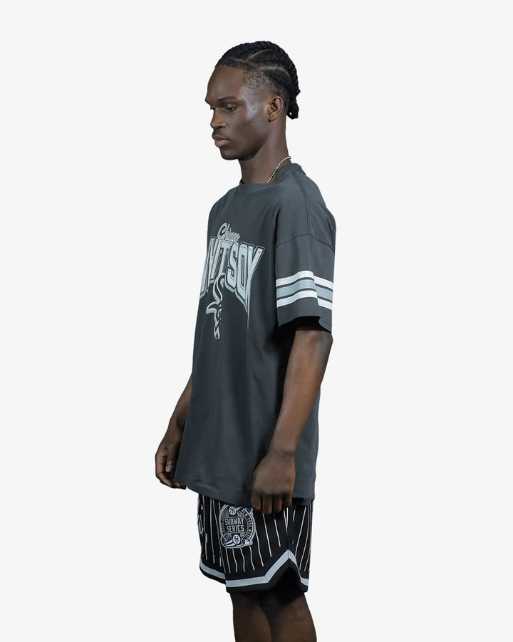 Elevate your streetwear collection with the Chicago White Sox Faded Vintage Strip Arch T-Shirt. This oversized tee features bold, distressed “White Sox” graphics and striped sleeve details for a genuine retro appeal. Made from soft, breathable cotton, it offers lasting comfort and durability. Perfect for game days, casual outings, or everyday wear, this tee is built for fans who want both comfort and style.