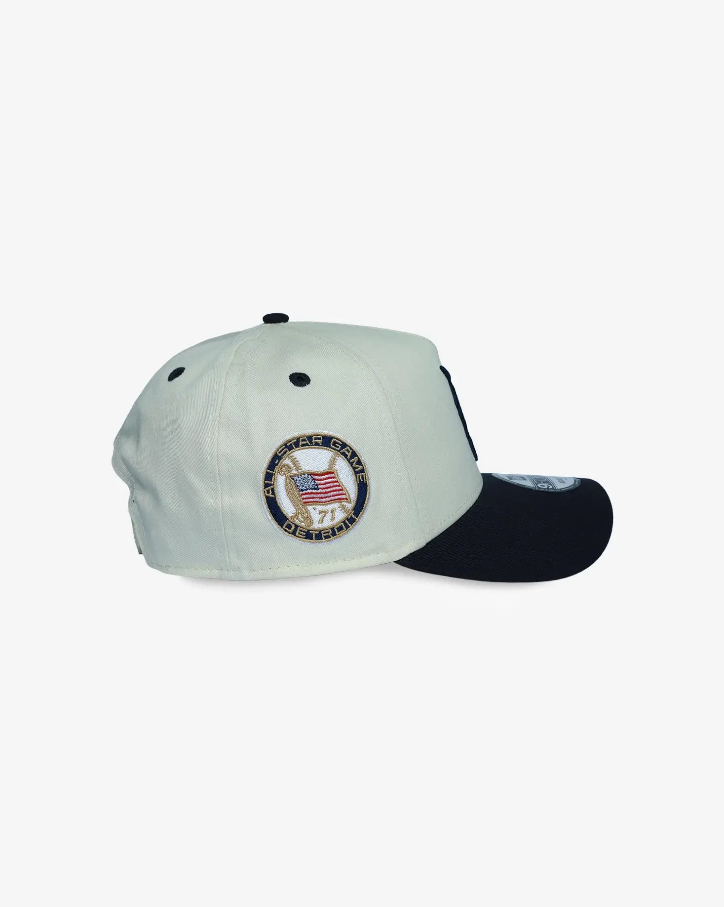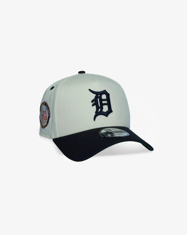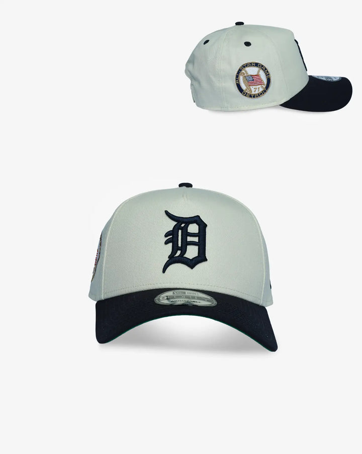 Celebrate baseball history with this Detroit Tigers All-Star Game vintage cap. Featuring a commemorative 1971 tiger stadium all-star game patch on the crown and the iconic Tigers "D" logo in classic navy, this New Era 9FORTY A-Frame delivers authentic throwback style. The cream-colored crown and navy visor create striking contrast, while the faded vintage finish adds genuine retro character. The structured A-Frame silhouette provides a high-profile fit with a pinched front for a refined look that works both on and off the field.