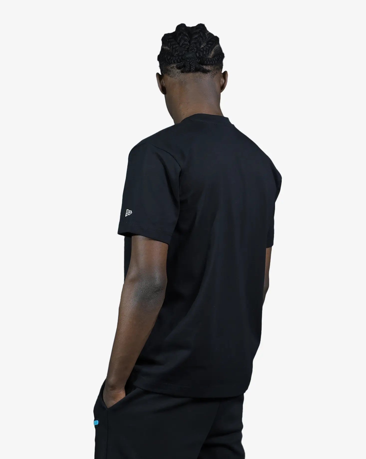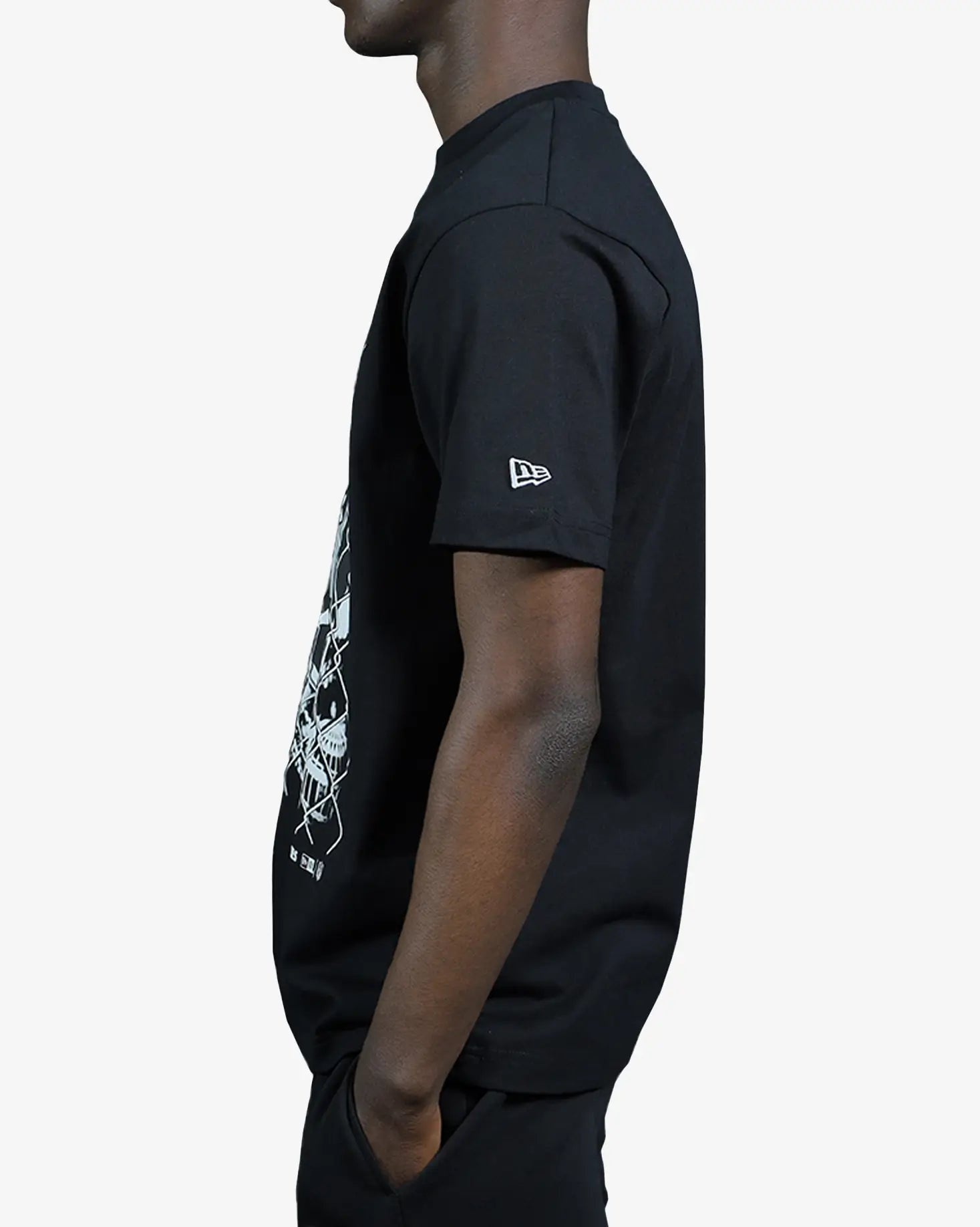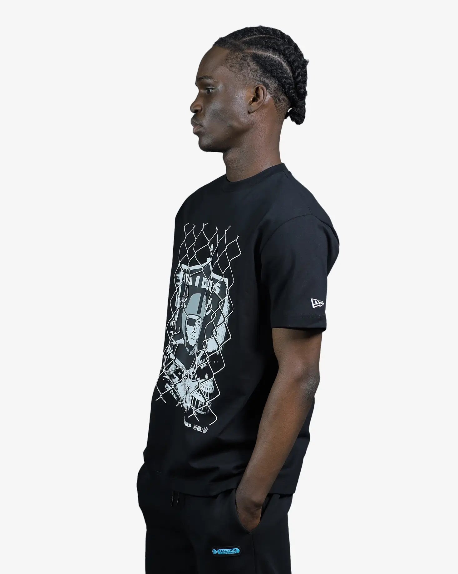 Show your support with the New Era Oversized Tee in Raiders style. Crafted from stretchy cotton for comfort and durability, this oversized tee features a high crew neck collar that adds structure and a bold front print representing your team. Its relaxed fit ensures ease of movement, making it perfect for casual wear or game day.