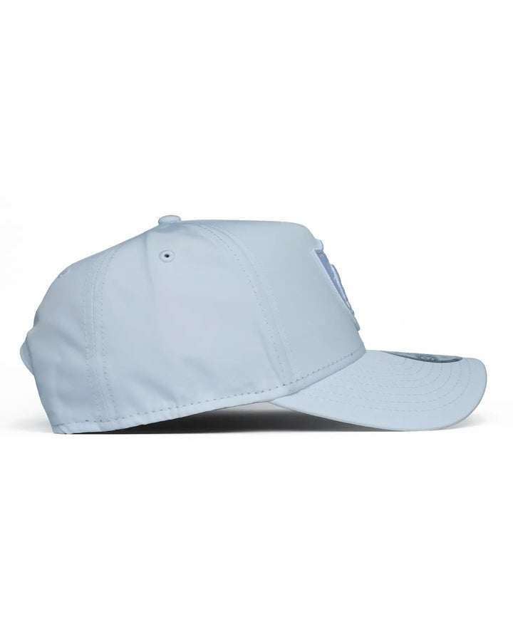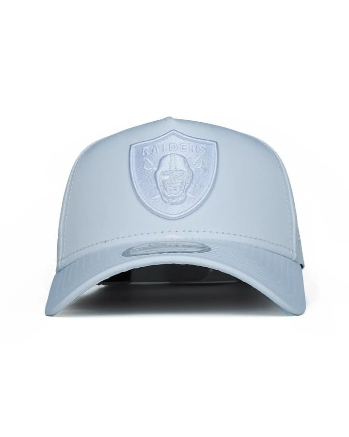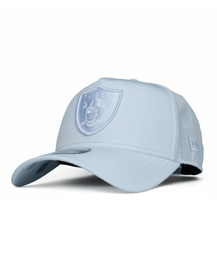 The Las Vegas Raiders Prolight 9Forty A-Frame combines iconic team pride with New Era's lightweight design. This official NFL headwear features a raised team logo on the front, white crown and upper visor, and a distinctive high-profile pinched crown for a sharp silhouette. The white New Era flag logo sits on the wearer's left side, while an adjustable snapback closure ensures a perfect fit for most. Crafted from 100% polyester in a 5-panel construction, it's built for comfort and durability. OSFM sizing makes it the perfect choice for any Raiders fan.