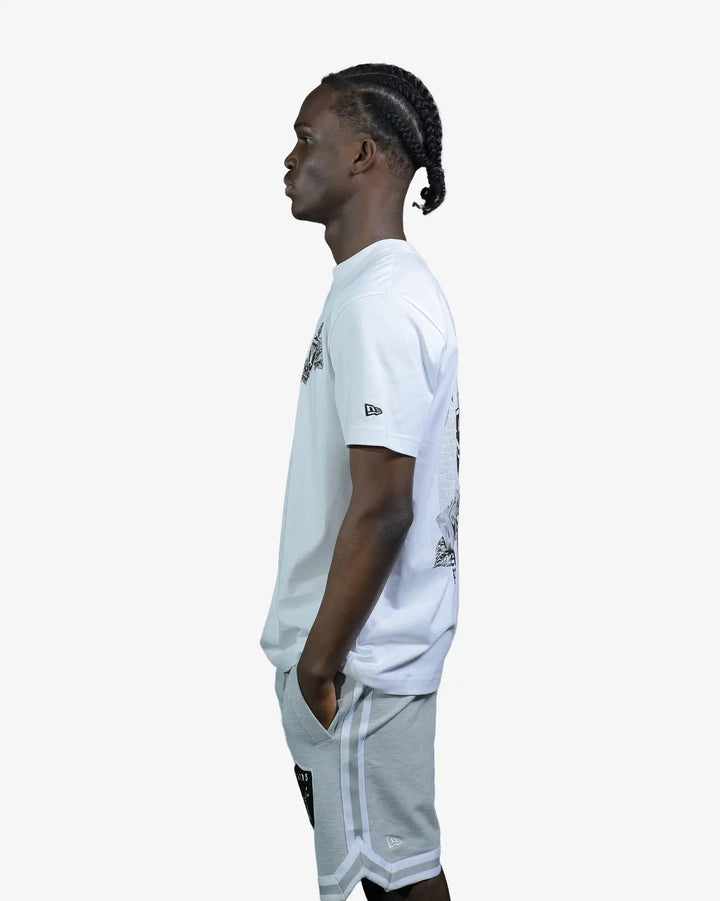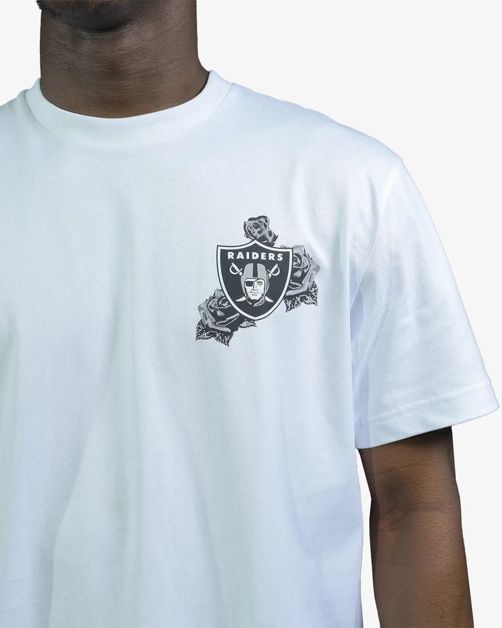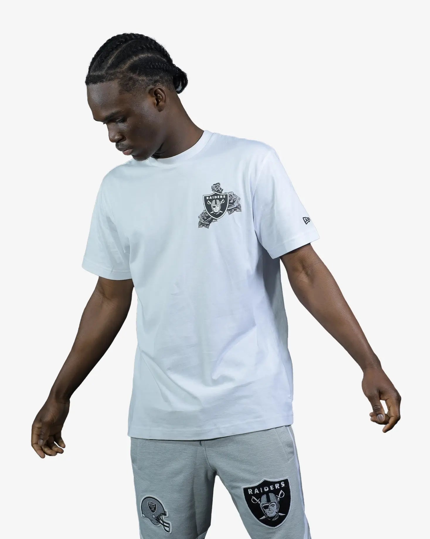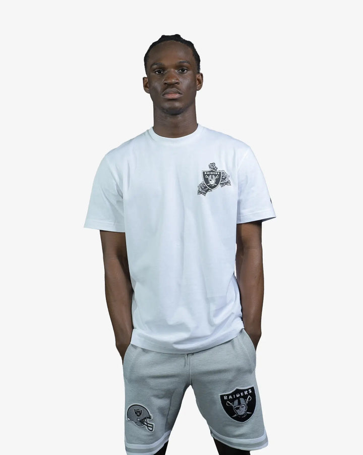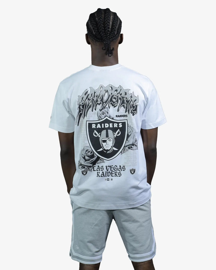 Display your Raiders pride with this officially licensed New Era tee, featuring bold printed team graphics that command attention. The oversized silhouette, dropped shoulders, and ribbed crewneck deliver an effortlessly cool aesthetic perfect for game day or casual wear. Reinforced with twin-needle stitching for durability, this white tee combines authentic merchandise quality with contemporary streetwear styling. A must-have for dedicated fans seeking premium team apparel.