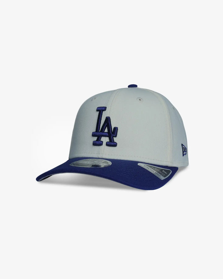 The 9SEVENTY stretch snapback cap in crisp white features an embroidered Los Angeles Dodgers logo on the front crown,...