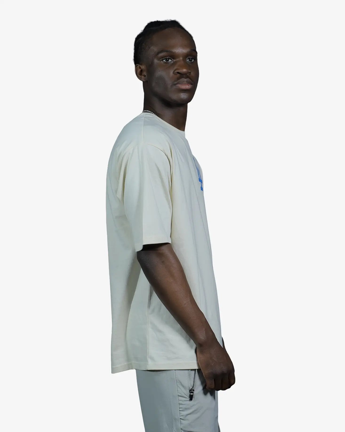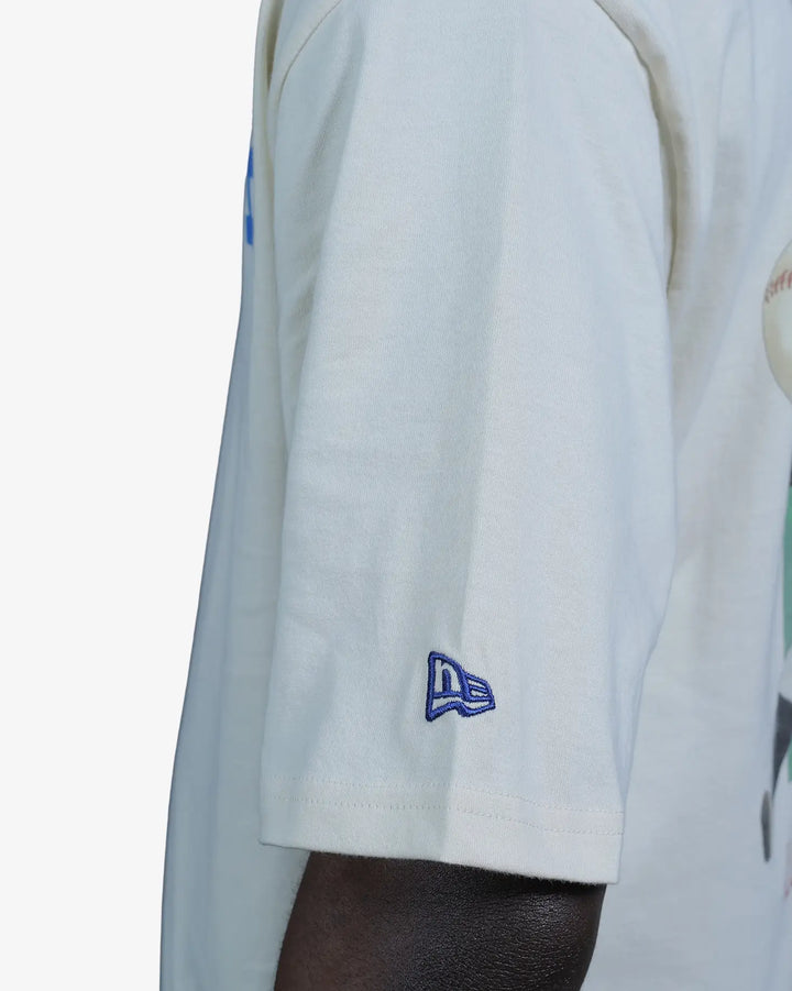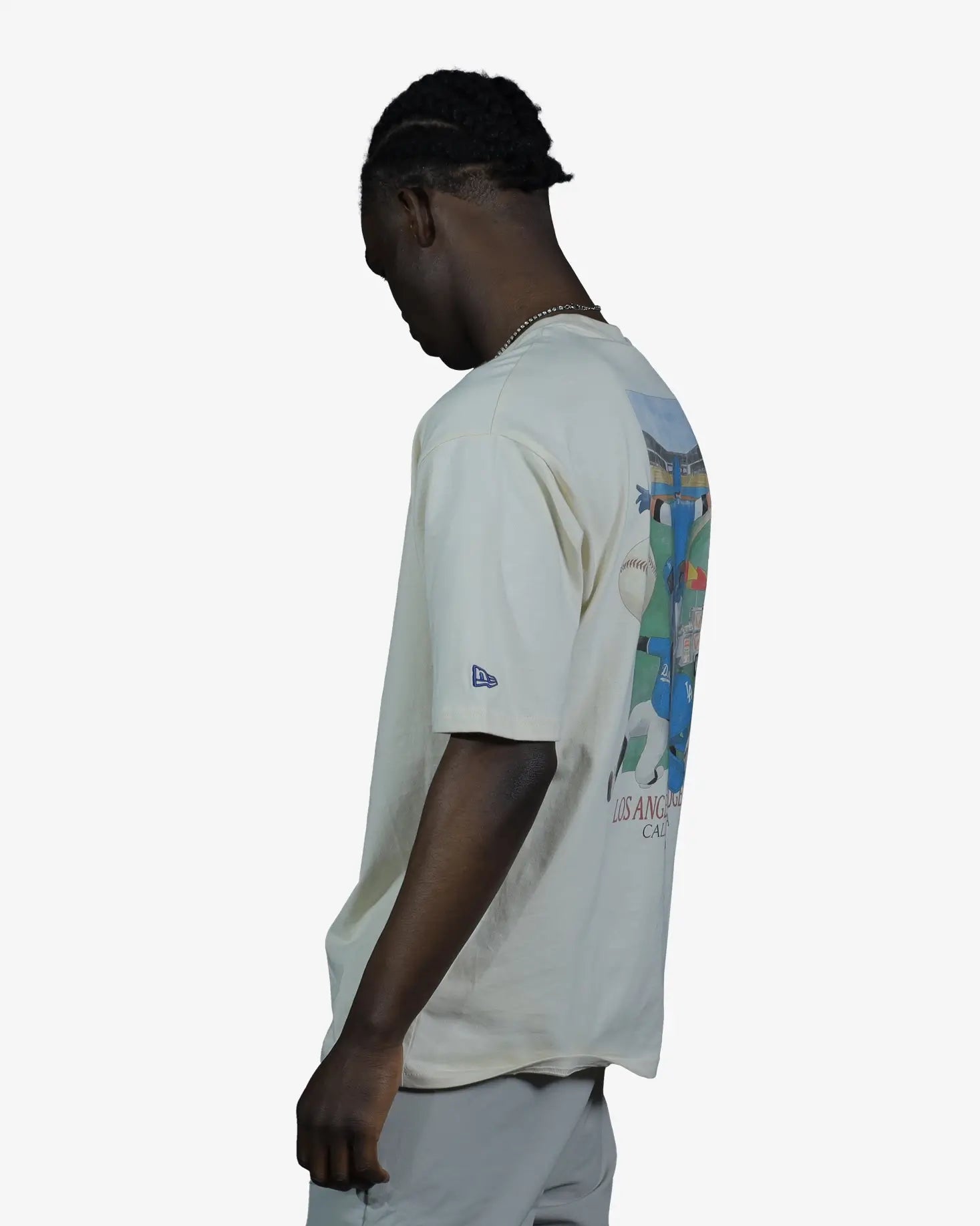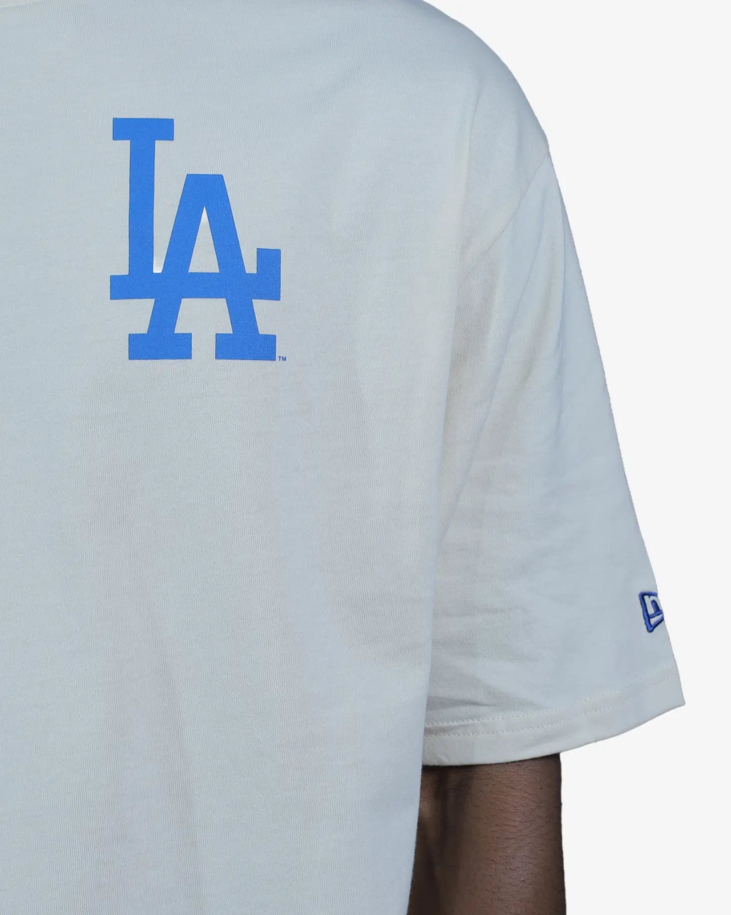 Celebrate your love for baseball with this oversized MLB graphic tee featuring the iconic LA Dodgers branding. The light beige cotton construction offers a versatile canvas for the embroidered chest logo and striking rear graphic, while the New Era Flag detail on the left sleeve adds authentic sportswear credibility. This piece delivers comfortable, relaxed styling perfect for game days or casual wear. A must-have for Dodgers fans and streetwear enthusiasts alike.