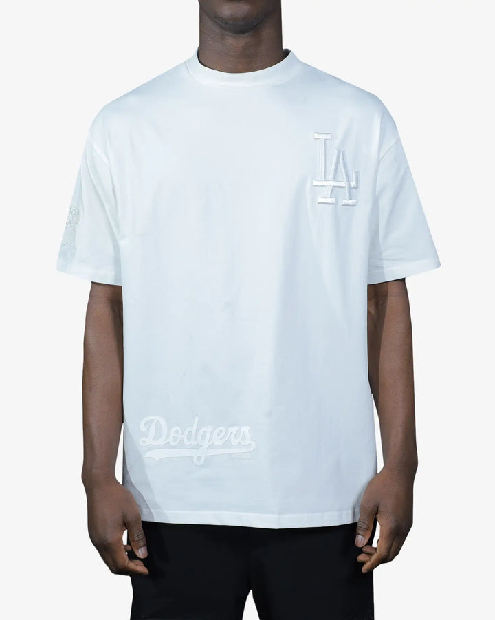 Elevate your wardrobe with the New Era MLB Tonal Pack T-Shirt, showcasing the timeless Dodgers logo on a clean white ...