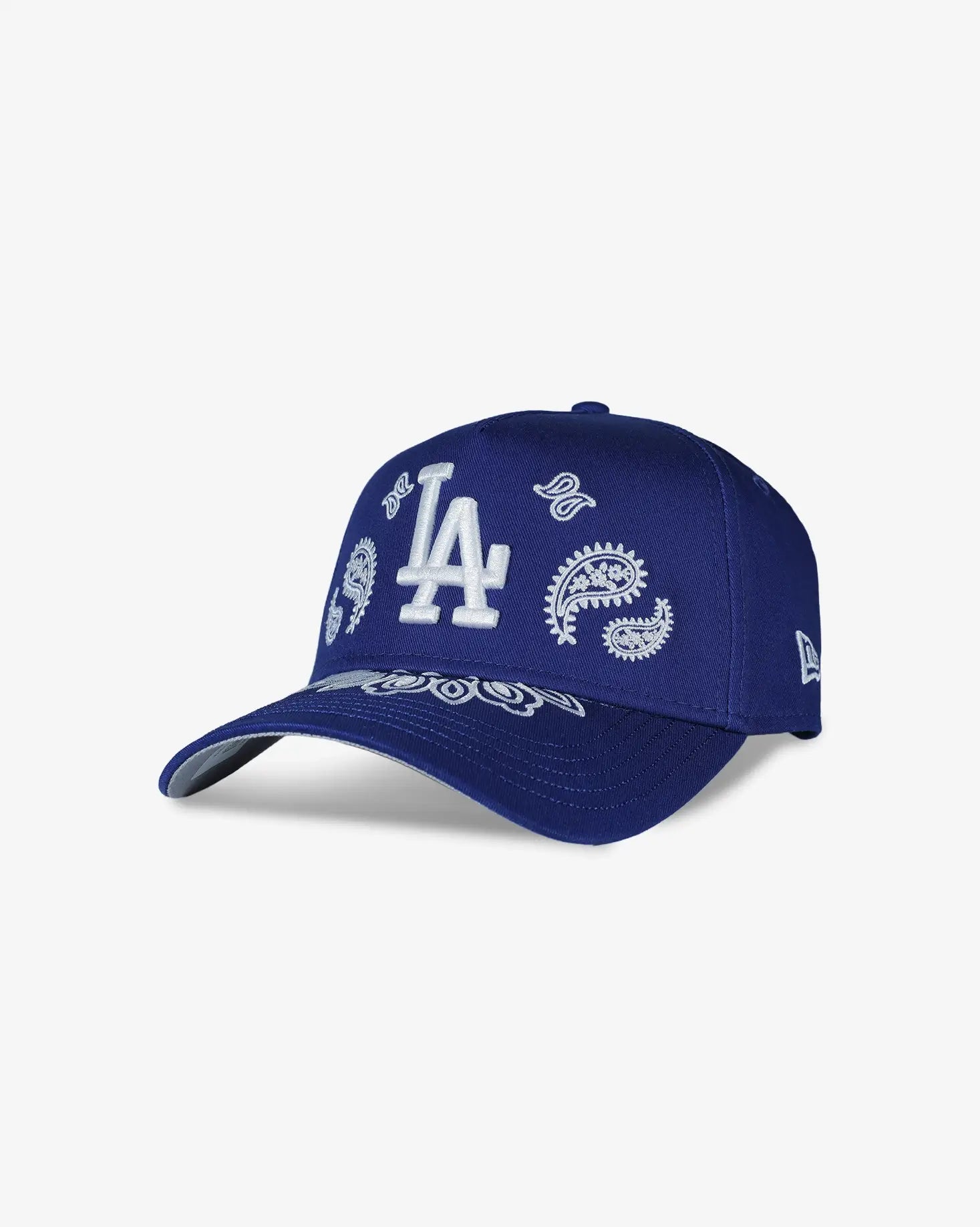 The New Era 9FORTY A-Frame Paisley Snapback delivers authentic LA style with a contemporary edge. Featuring the iconic Los Angeles Dodgers branding paired with intricate paisley detailing, this adjustable snapback combines classic baseball cap construction with modern streetwear aesthetics. The signature New Era flag logo sits prominently on the left side, while the 9FORTY A-Frame silhouette provides a structured, flattering fit. Perfect for collectors and casual fans alike, this snapback transitions seamlessly from street to stadium.