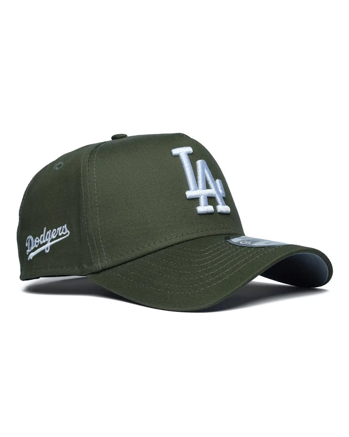 The Los Angeles Dodgers Script 9Forty A-Frame cap delivers authentic baseball styling with premium construction. Crafted from 100% cotton, this structured A-frame design features a curved brim for classic comfort and sun protection. The adjustable snapback closure ensures a customizable fit for all head sizes. Detailed embroidery showcases the iconic Dodgers logo across the crown, complemented by the New Era flag on the left side and reinforced embroidered eyelets for durability. A versatile essential for fans and streetwear enthusiasts alike.
