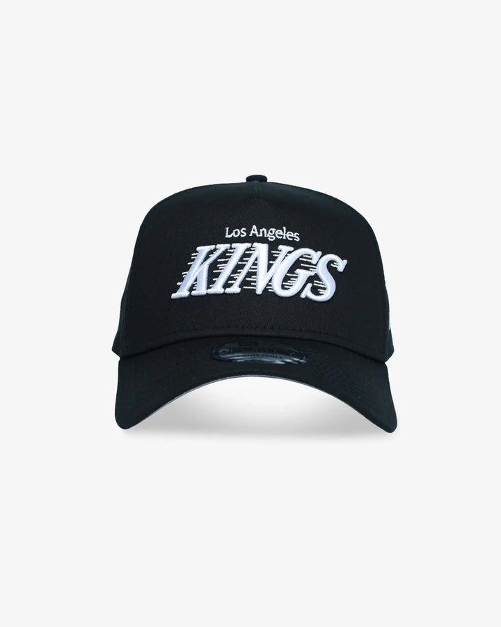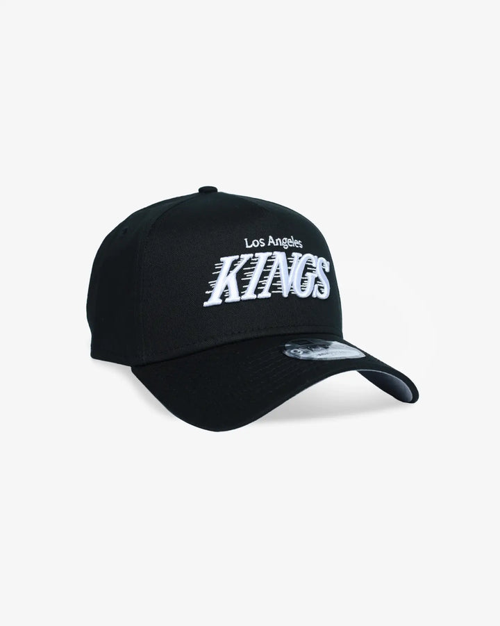 The Los Angeles Kings 9FORTY A-Frame Adjustable Hat showcases a classic retro Kings wordmark rendered in raised embro...