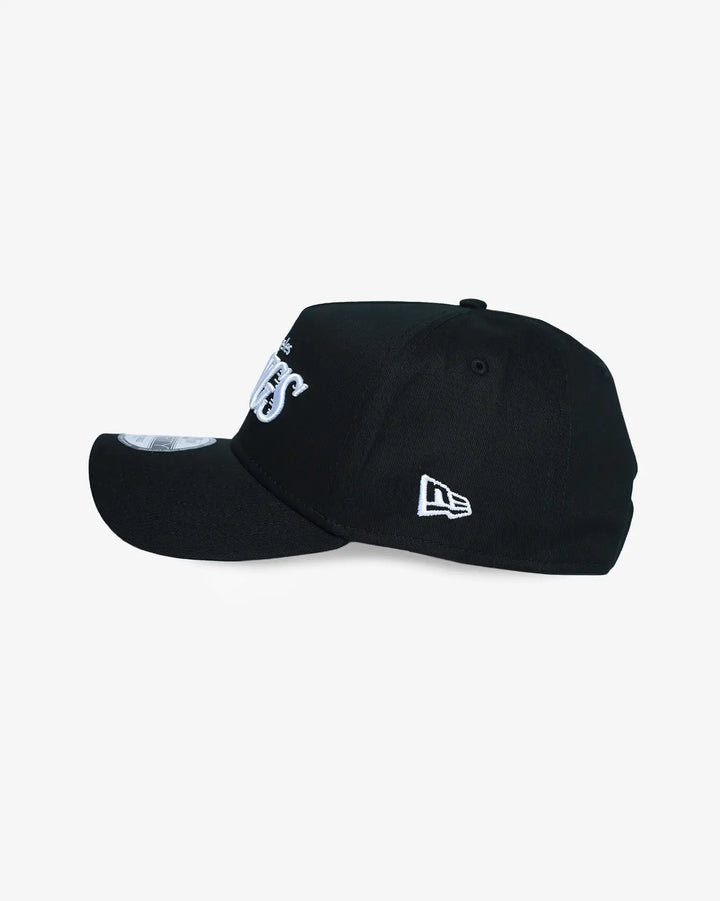The Los Angeles Kings 9FORTY A-Frame Adjustable Hat showcases a classic retro Kings wordmark rendered in raised embroidery across the high-profile pinched cotton crown. This structured snapback features a contrasting visor that adds visual depth, while the New Era flag logo sits prominently on the left side. The adjustable snapback enclosure at the back ensures a customizable fit for all head sizes. Built with premium cotton construction and expert embroidery work, this cap delivers authentic NHL heritage styling with modern comfort and durability.