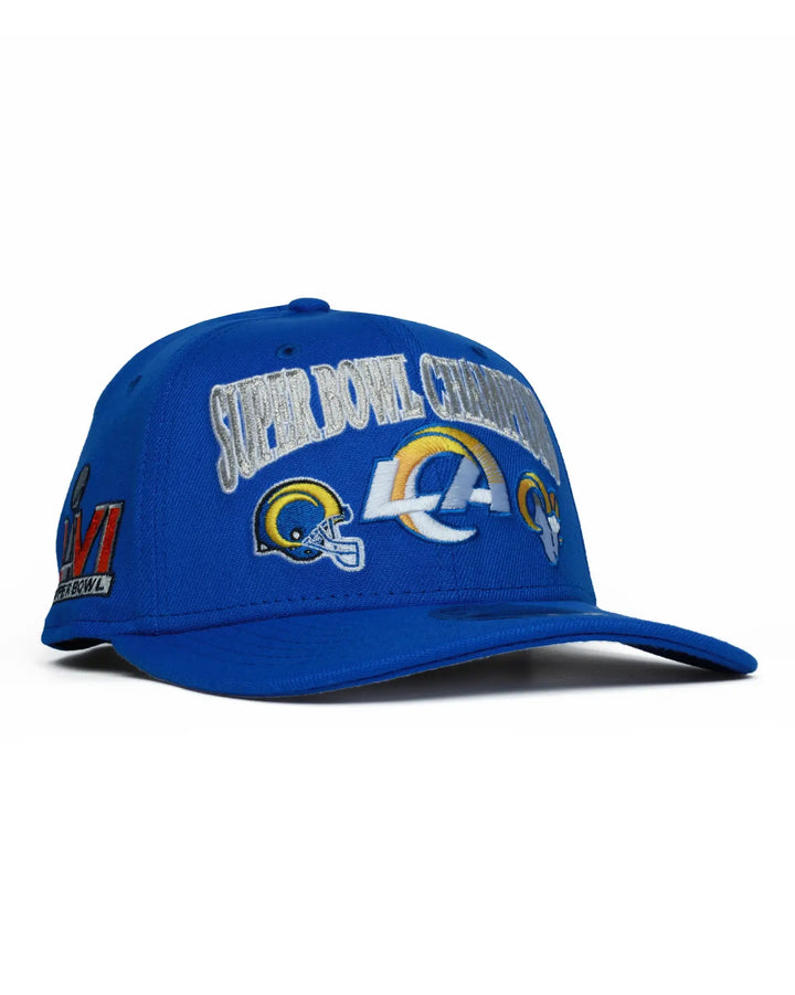 Celebrate the Los Angeles Rams' championship legacy with this premium 9SEVENTY Stretch-Snap hat. Featuring an embroidered multi-logo Rams detail beneath an iconic Super Bowl Champions wordmark, this cap combines bold design with superior comfort. The high-profile structured crown is crafted from quality polyester for a contoured fit that holds its shape. A Super Bowl side patch adds authentic championship credibility, while the adjustable snapback enclosure ensures a perfect fit for any fan. Perfect for game day or everyday wear.