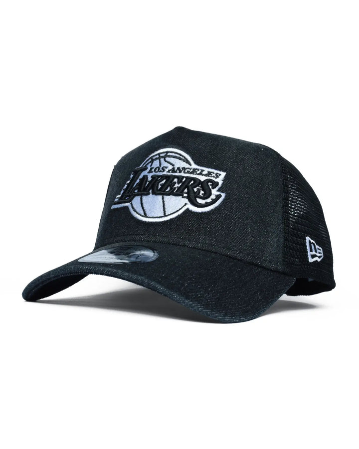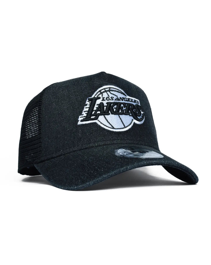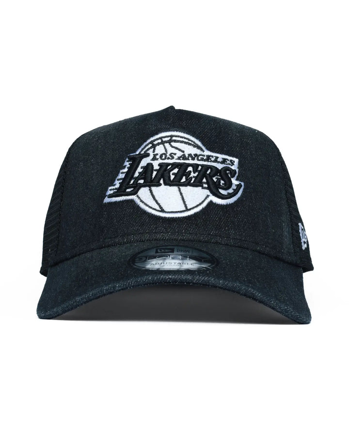 Bring classic sports style to your everyday rotation with the New Era Los Angeles Lakers 9FORTY A-Frame Trucker Cap. Featuring a structured A-frame crown and breathable mesh back, this trucker hat blends iconic NBA branding with all-day comfort. Finished with a curved brim and adjustable snapback, it's a versatile piece built for casual wear and street-ready looks. A-Frame Structured Crown Trucker Hat with Mesh Back Panels Adjustable Snapback Closure Curved Brim.