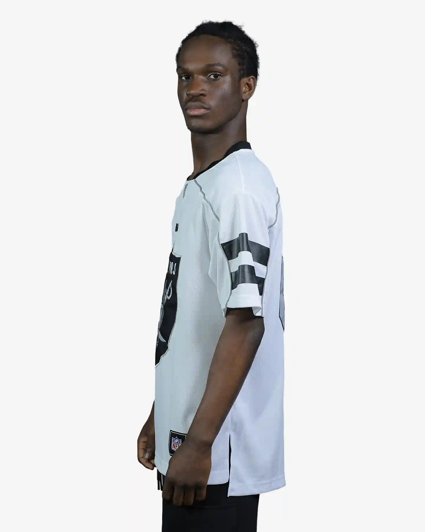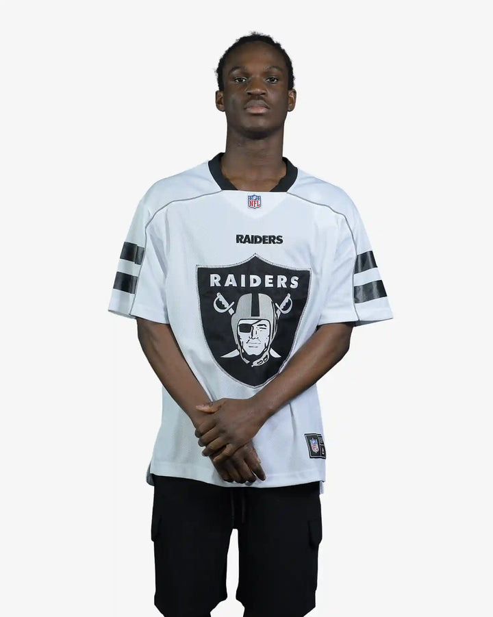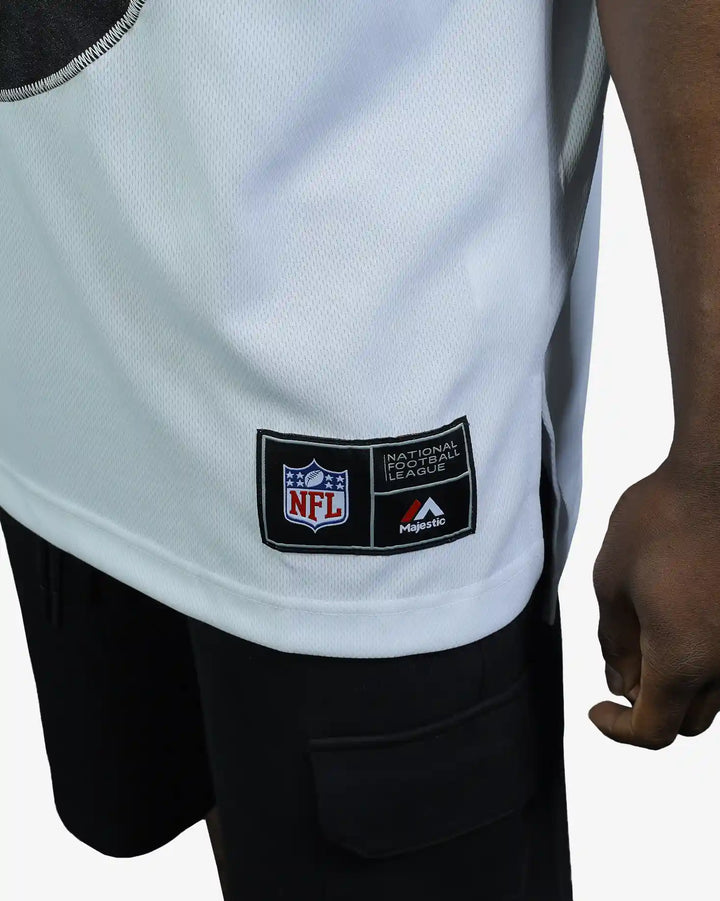 Display your Raiders allegiance with the Las Vegas Raiders NFL Adult Mesh Replica Jersey by Majestic. Engineered with breathable mesh construction, this authentic replica jersey delivers superior comfort and ventilation for extended wear during game day or casual outings. The classic design showcases team pride with professional-grade quality, making it an essential addition to any fan's collection. Perfect for stadium visits, watch parties, or everyday streetwear. Available in Optic White. Please note: colours may vary slightly from screen display.