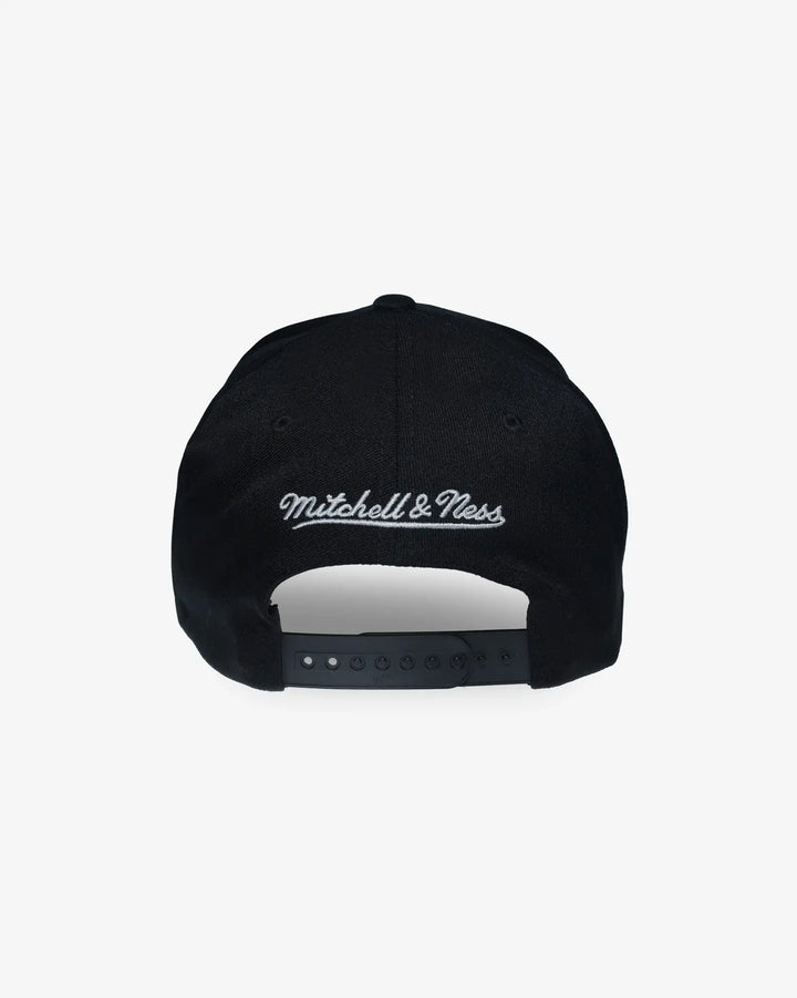 Designed for a comfortable and secure fit, the hat combines the best of both worlds with its Flex Fit and adjustable snapback closure. This hybrid design ensures a snug feel that's tailored to your head while still offering easy adjustments. The iconic Mitchell & Ness wordmark is embroidered on the back, adding a touch of classic sports-apparel heritage.