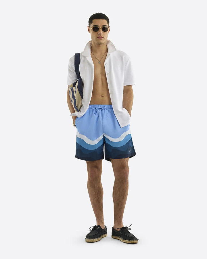 The Penrose 7" Swim Short combines comfort and practicality with a soft-touch fabric and quick-dry technology, ideal for beachwear. An elasticated waistband with adjustable draw cords ensures a secure fit, while side mesh pockets offer convenient storage. Finished with tasteful embroidered Nautica branding, these swim shorts deliver both style and functionality for your active coastal lifestyle.