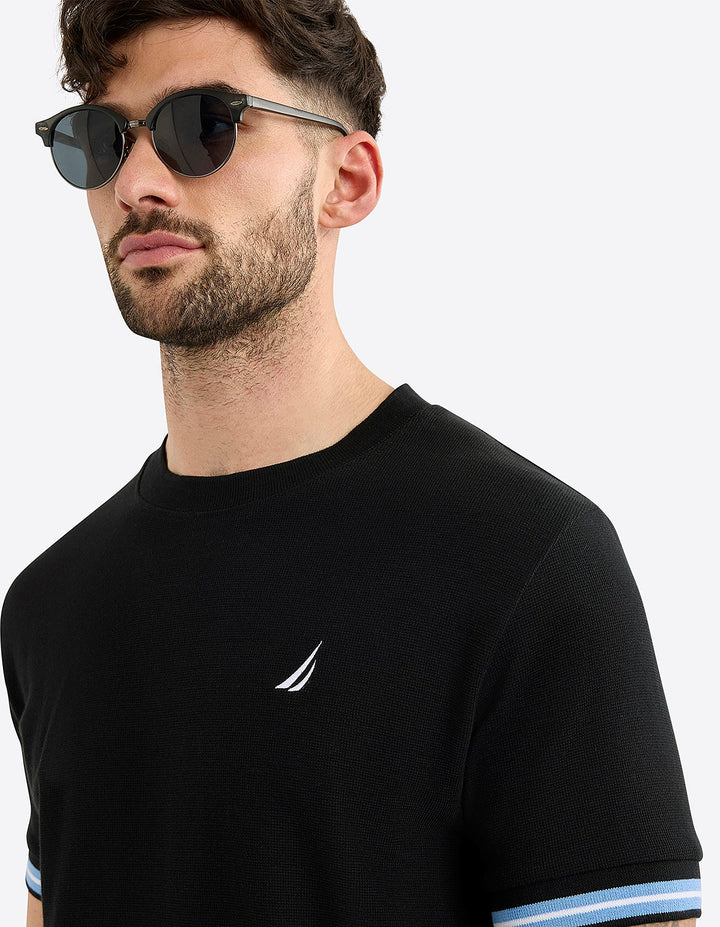 The Salcombe T-Shirt delivers effortless everyday style in premium textured cotton. Its waffle-knit construction offers breathable comfort perfect for warm weather, while the classic crew neck and embroidered Nautica logo add timeless appeal. Lightweight yet durable, this versatile piece transitions seamlessly from casual outings to relaxed weekends. A summer essential that combines quality craftsmanship with understated sophistication.