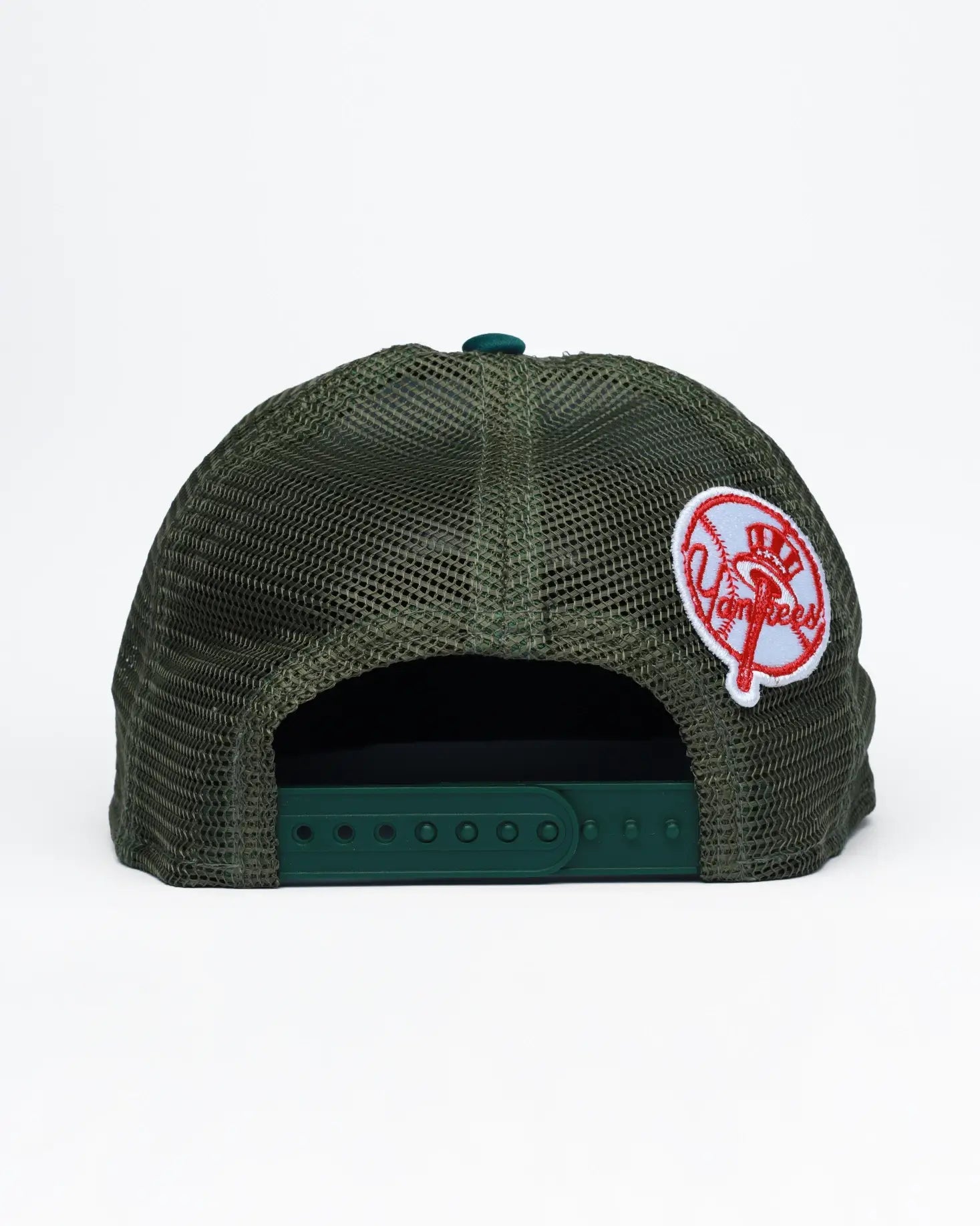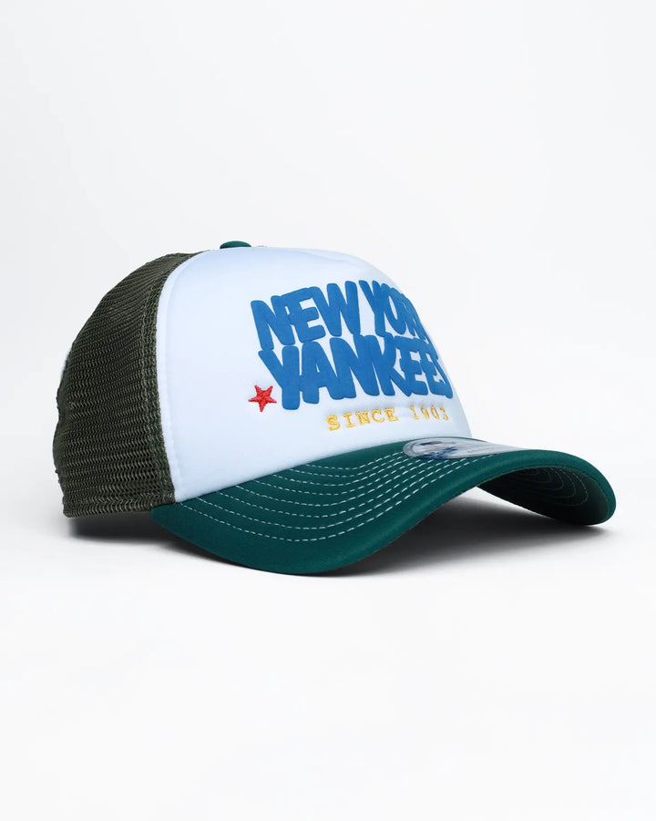 New York Yankees 9Forty A-Frame Trucker featuring a bold puff print design across the crown paired with New Era embro...