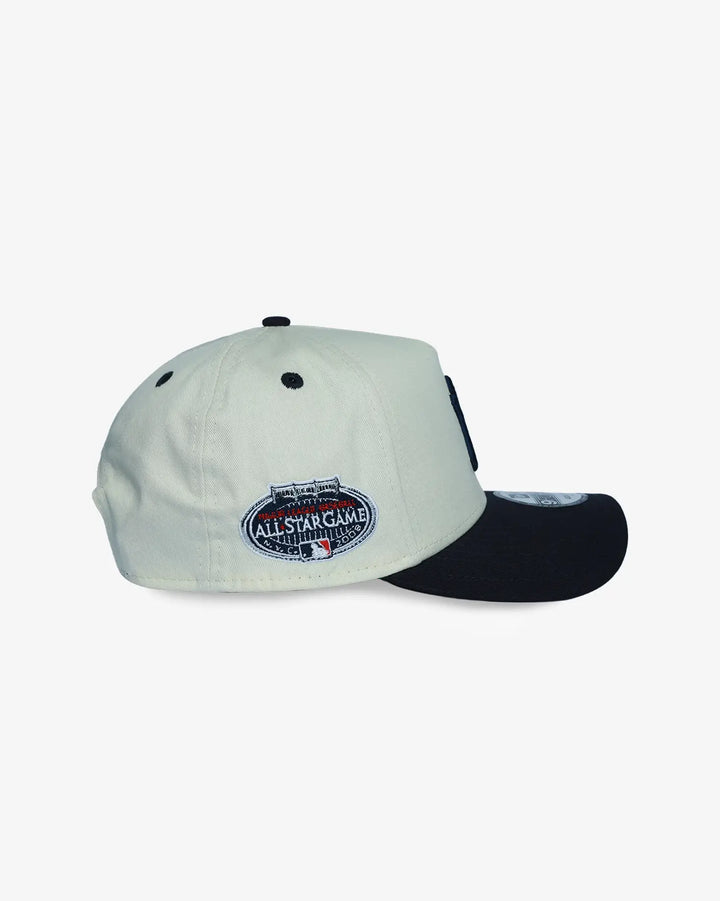 Celebrate baseball history with this New York Yankees Vintage White All-Star Game commemorative cap. Featuring an ornate embroidered patch on the crown referencing the 2008 MLB All-Star Game at Yankee Stadium, this piece captures a significant moment in the franchise's legacy. The vintage white colorway delivers authentic retro appeal, while the iconic navy "NY" logo maintains the Yankees' timeless aesthetic. Built on New Era's acclaimed 9FORTY A-Frame silhouette, the structured high crown and pinched front panel create a modern, elevated fit that collectors and fans alike appreciate. Finished with a contrasting navy visor for sharp definition.