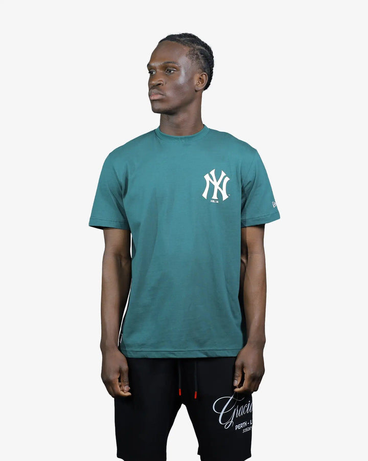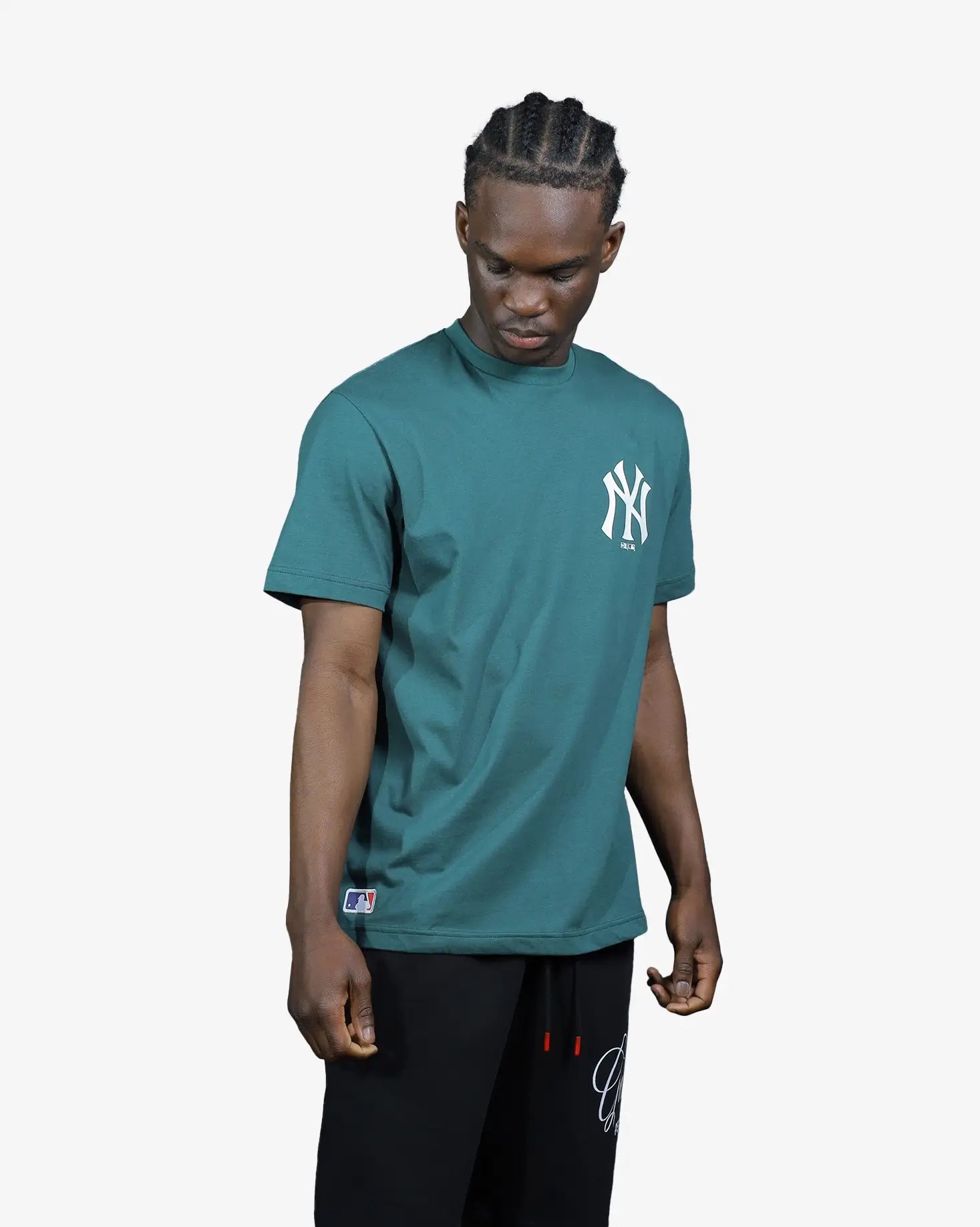 The New York Yankees Essential Seasonal T-Shirt delivers authentic MLB styling with meticulous attention to detail. This oversized fit piece showcases a washed printed Yankees logo positioned prominently on the chest, complemented by league and NE Box logos. An official MLB woven league badge sits at the hemline, while a NE Flag logo adorns the sleeve for added visual interest. Constructed from premium 190 GSM 100% cotton jersey, the fabric provides durability and breathability ideal for year-round wear. A versatile staple for dedicated fans seeking genuine team apparel with refined construction.