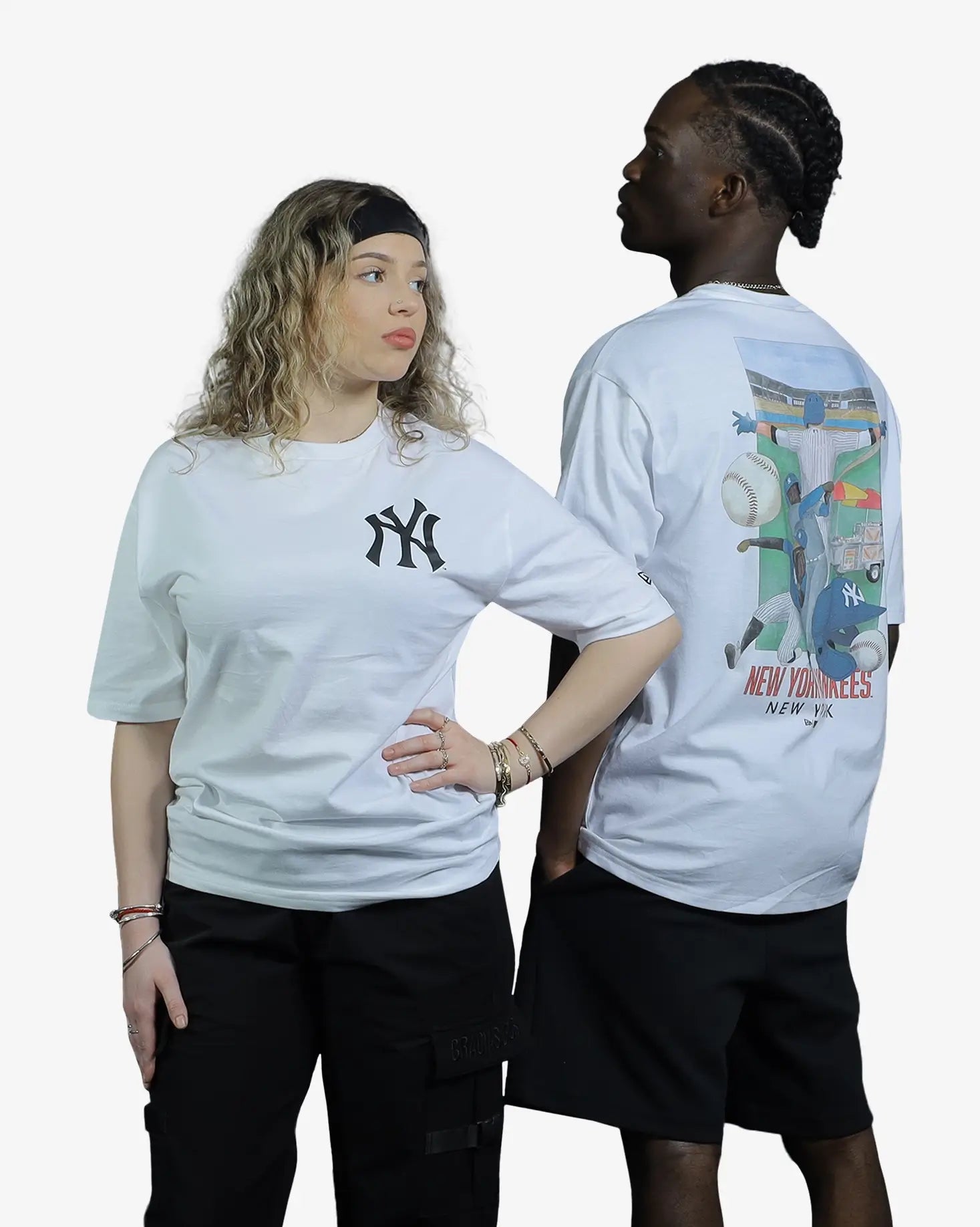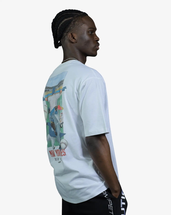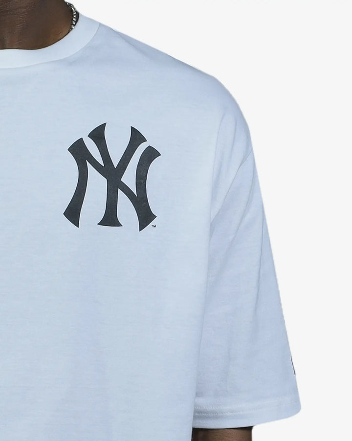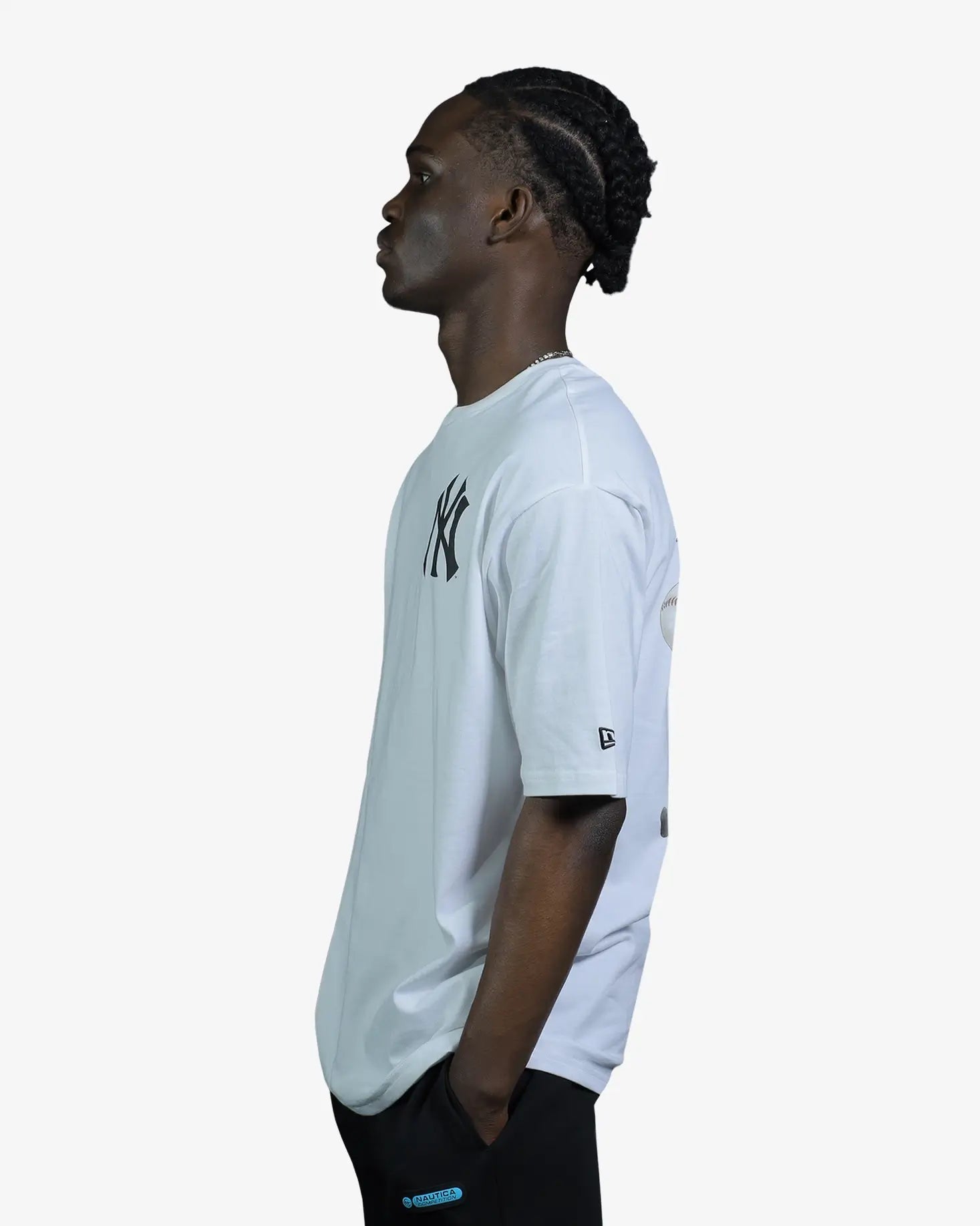 The New Era Men's MLB New York Yankees Graphic T-Shirt combines comfort and team spirit with premium soft cotton fabric and a relaxed fit. Featuring a ribbed round neck and short sleeves, it offers a breathable, casual style perfect for everyday wear. The bold Yankees logo on the front, paired with a distinctive graphic print on the back, lets you showcase your support with a timeless look. Ideal for fans seeking authentic style and all-day comfort.