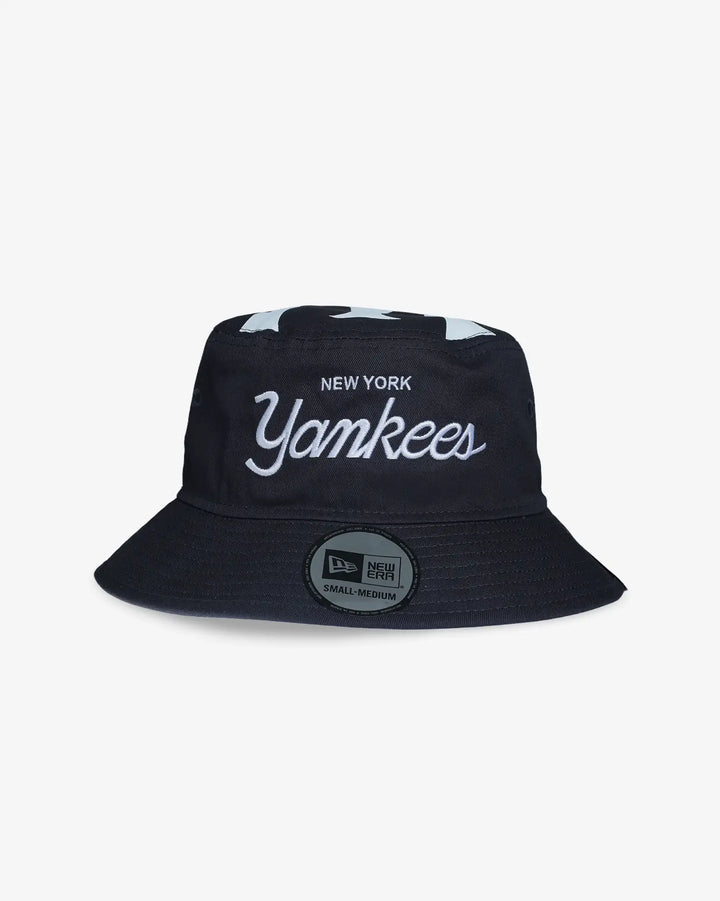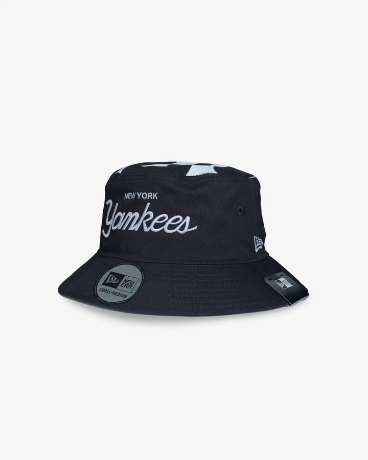 The New Era Bucket MLB Team Script New York Yankees cap merges timeless design with expert construction. This bucket ...
