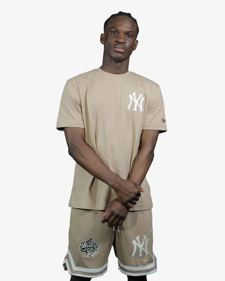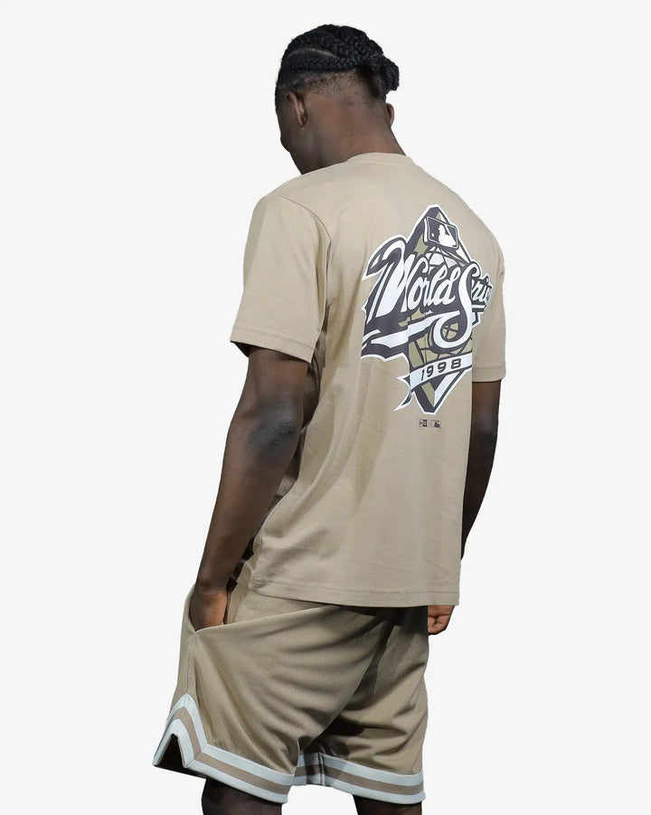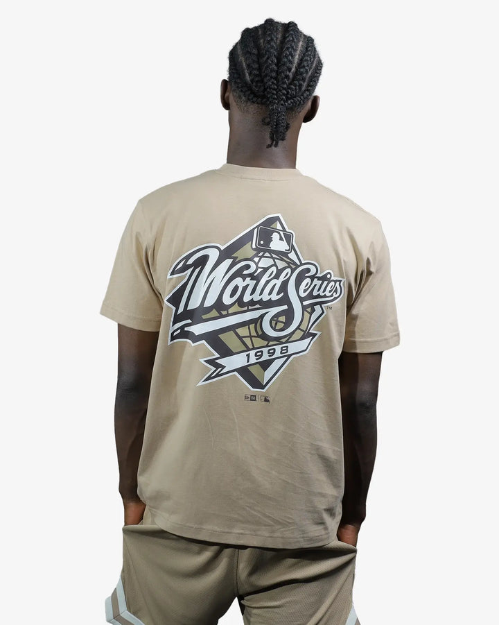 Celebrate baseball heritage with this New York Yankees World Series Sandy Bay Champion T-Shirt. Featuring a striking World Series graphic dominating the back and the iconic Yankees logo embroidered on the left chest, this tee delivers authentic team spirit. The NE Flag logo on the sleeve adds distinctive character to the design. Crafted from premium 190 GSM 100% cotton jersey, it offers superior comfort and durability. The oversized fit provides an effortless, contemporary silhouette perfect for casual wear or game day.